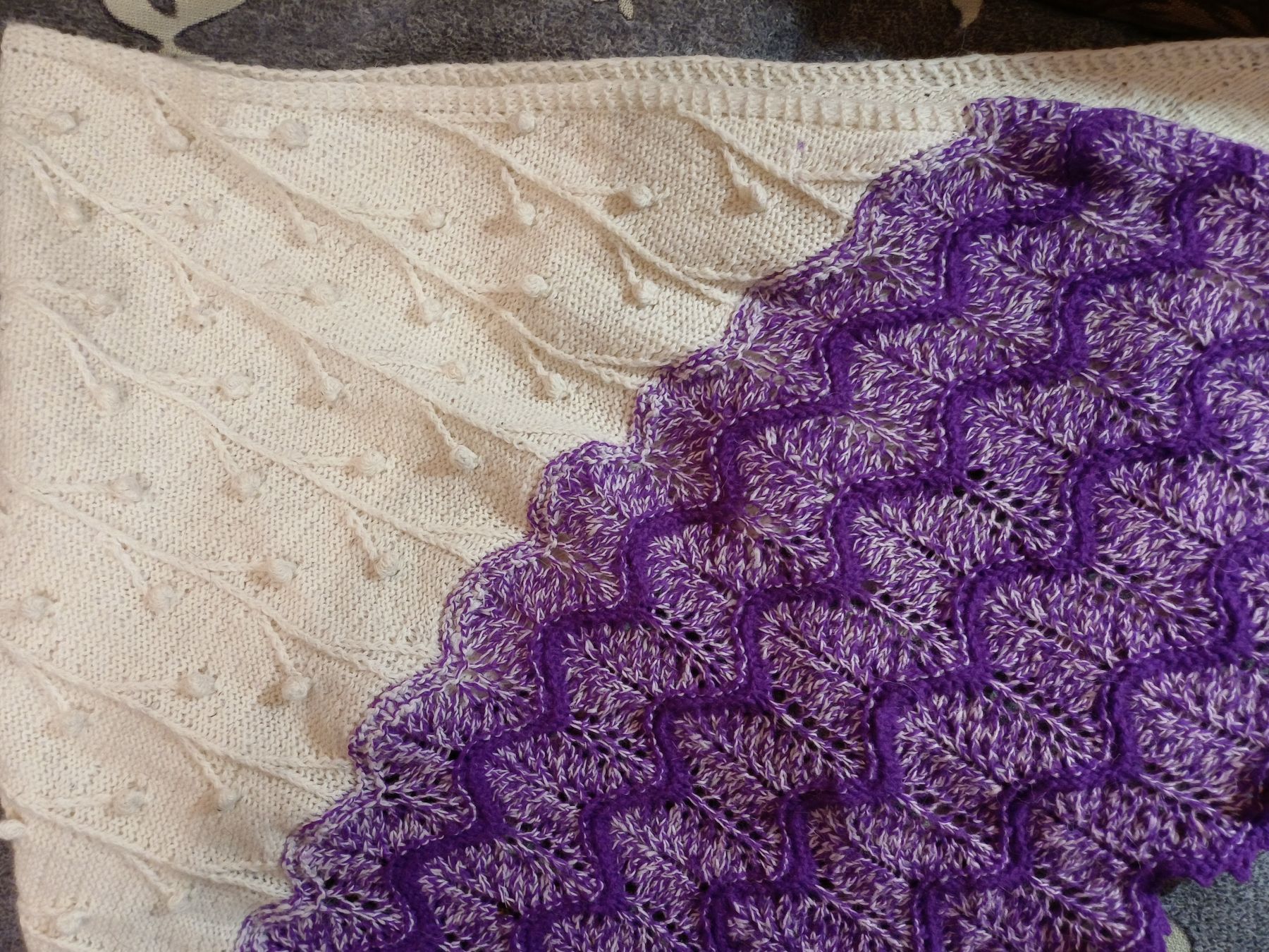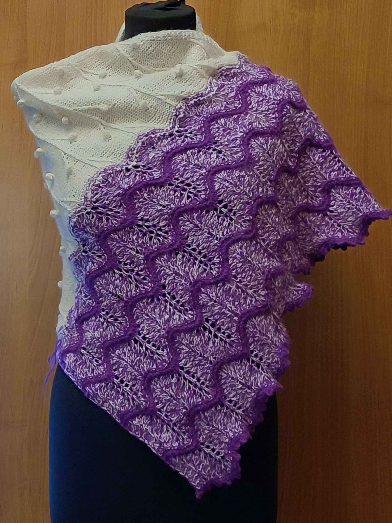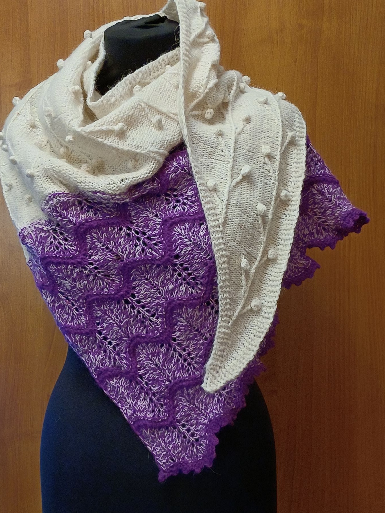 Цвет: Сочетание молочного (экрю) и насыщенного фиолетового меланжа.