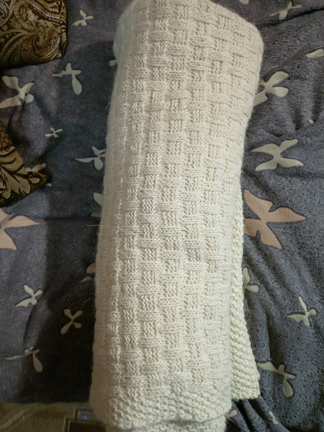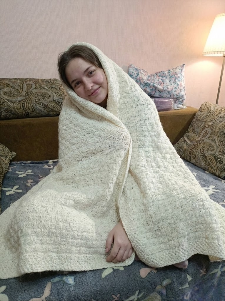 Белый шерстяной плед (ручная работа)