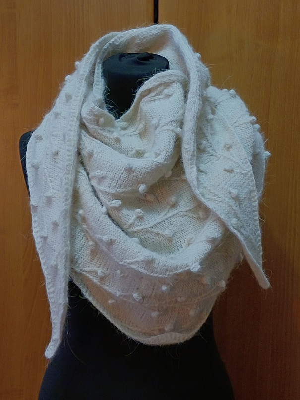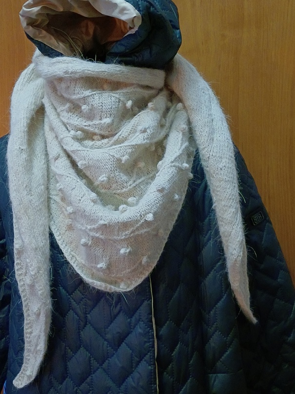 Чистошерстяная вязаная косынка - легкая и очень теплая, связана вручную из пряжи ( овечья шерсть - НЕ САМАЯ МЯГКАЯ ПРЯЖА, НЕМНОГО ПОКАЛЫВАЕТ, НО ЭТО УСИЛИВАЕТ ЕЁ СОГРЕВАЮЩИЙ ЭФФЕКТ ).
