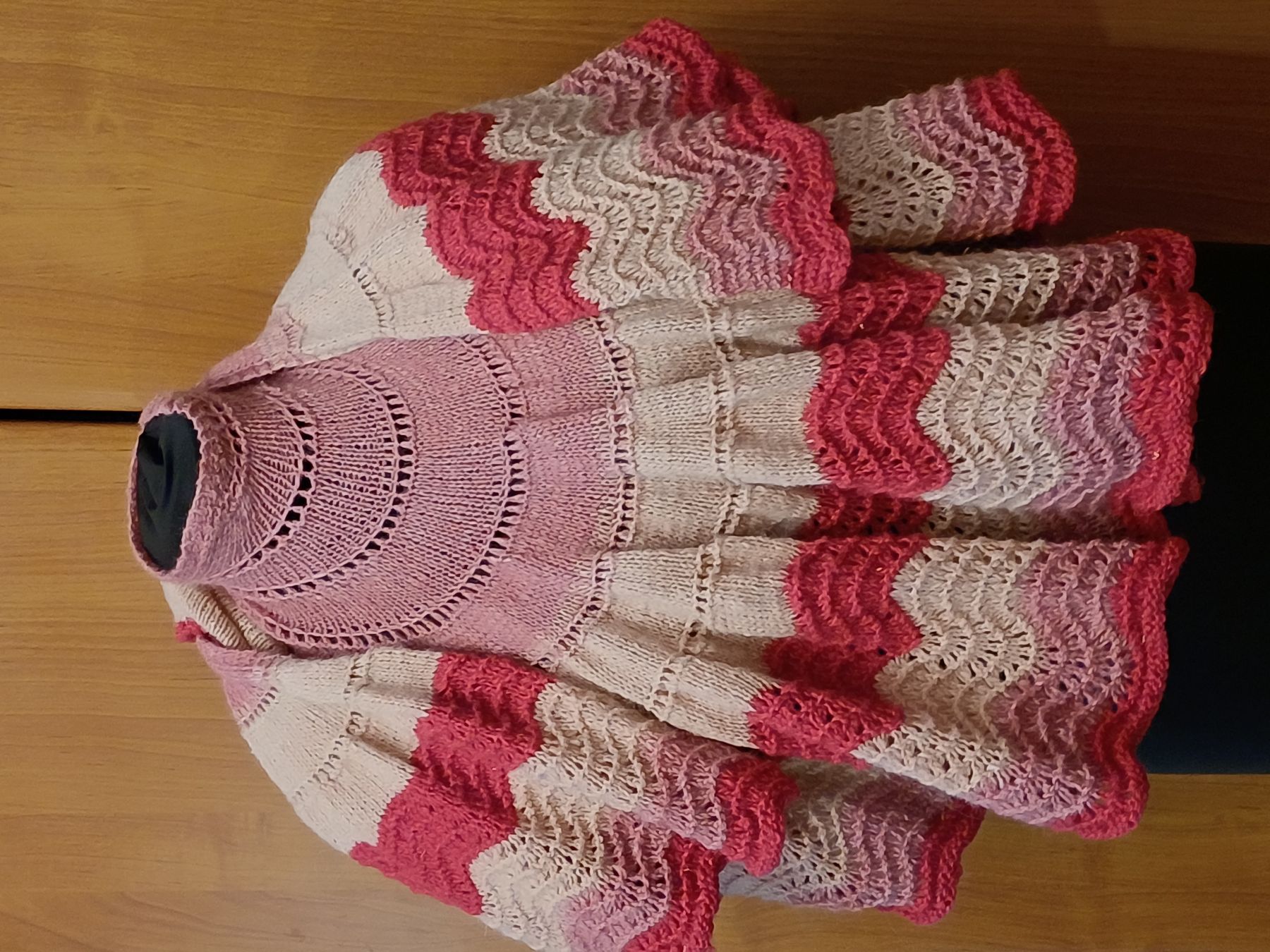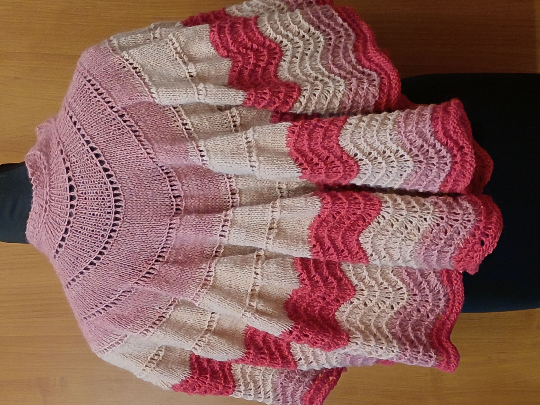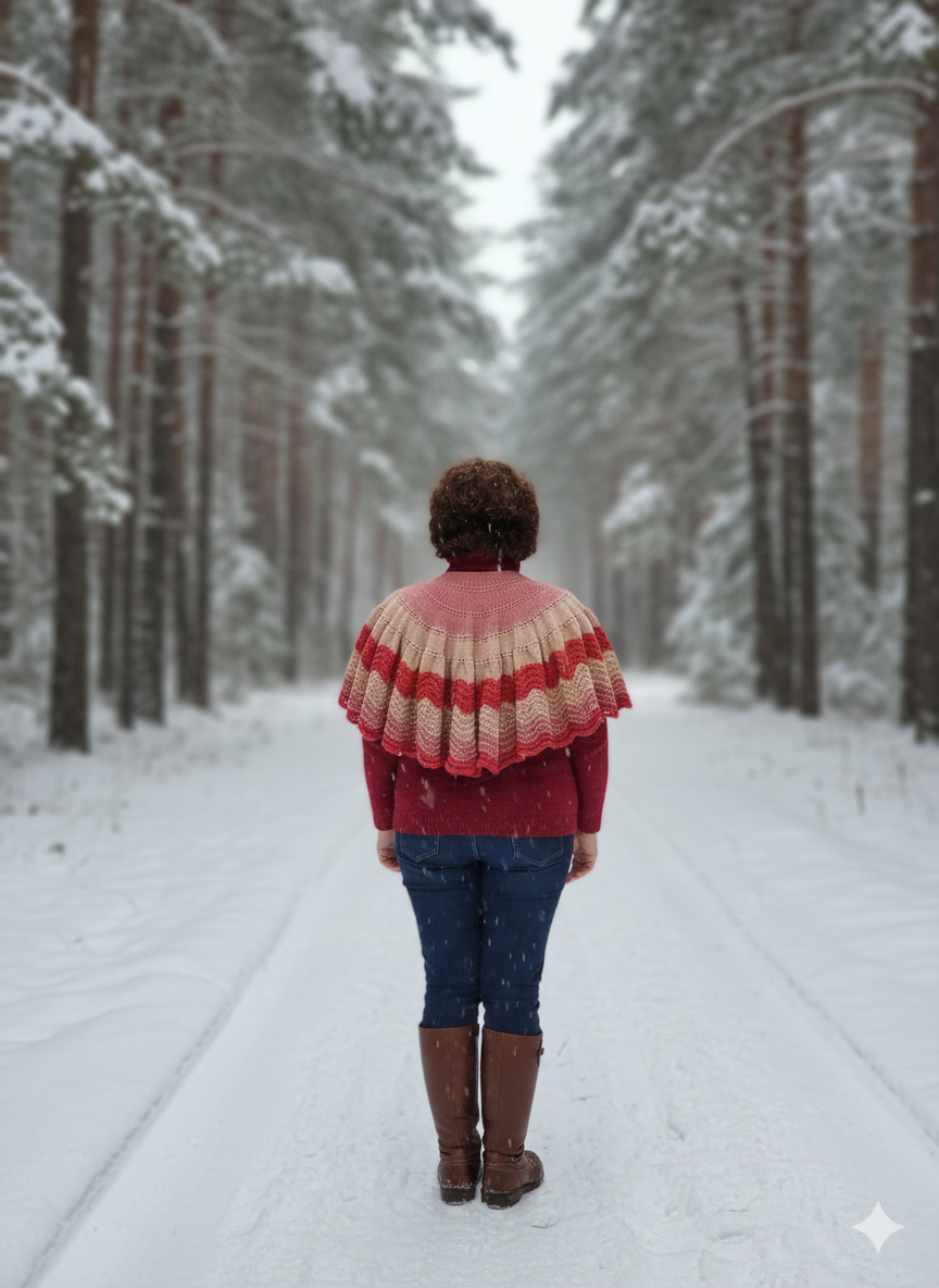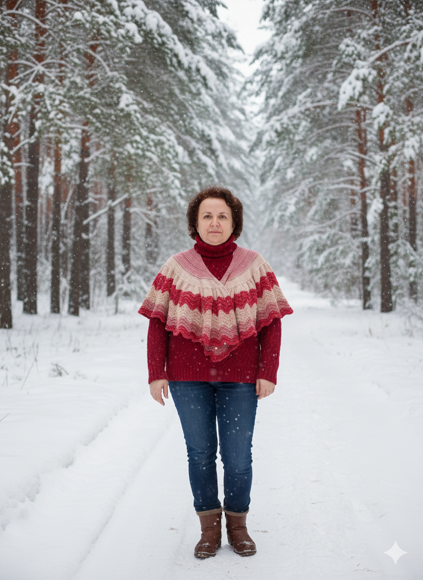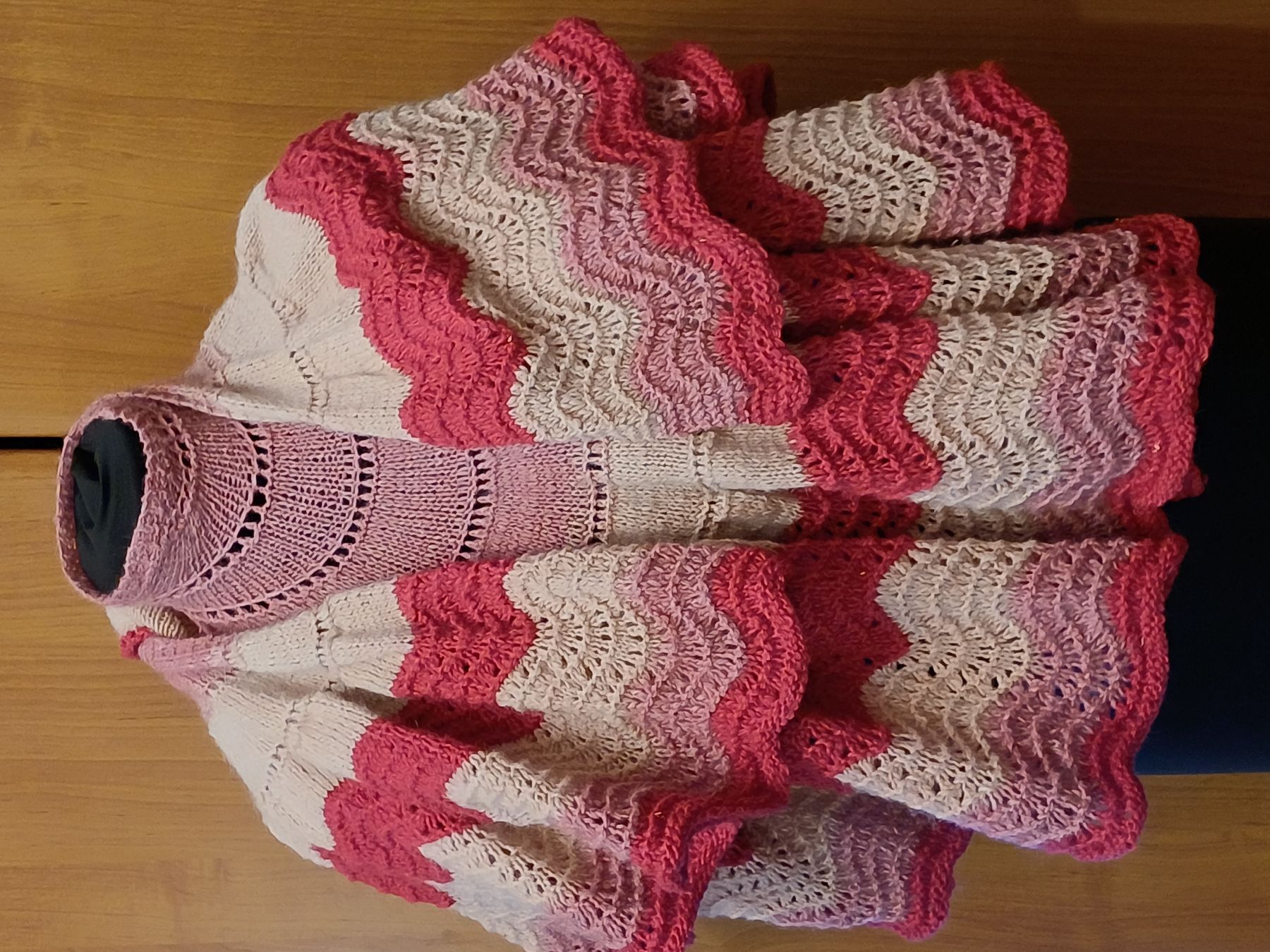 Эффектная накидка из 100% шерсти с уникальным волновым (зигзаг) узором. Градиентные переходы из бежевого в насыщенный розовый создают яркий и запоминающийся акцент. Модель универсальна: можно носить как элегантное болеро или тёплый шарф-пончо. Незаменимая вещь для тех, кто ценит комфорт, качество и стиль.Идеально дополнит свитер или водолазку. Прекрасный подарок себе или близким.