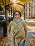 Уникальный дизайн: Благодаря пряже секционного крашения, каждая шаль имеет свой неповторимый цветовой узор.