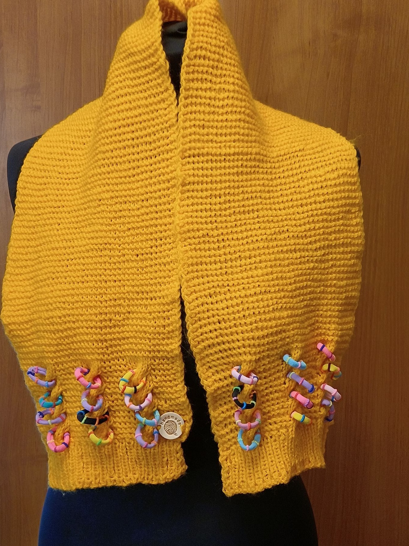Представляю вашему вниманию самый уютный аксессуар для маленькой модницы. Этот вязаный шарф выполнен в красивом ярко жёлтом цвете. Но главная изюминка — в деталях! ✨ Концы шарфика украшены игривыми разноцветными резинками для волос, вплетенными в узор. Это не просто декор, а классный тактильный элемент, который так нравится детям перебирать пальчиками. Особенности: Мягкая, рельефная вязка (не колется!). Длинная пушистая бахрома для игривого настроения. Яркие акценты, которые поднимут настроение даже в самый пасмурный день. Пусть зима и осень будут яркими и теплыми!